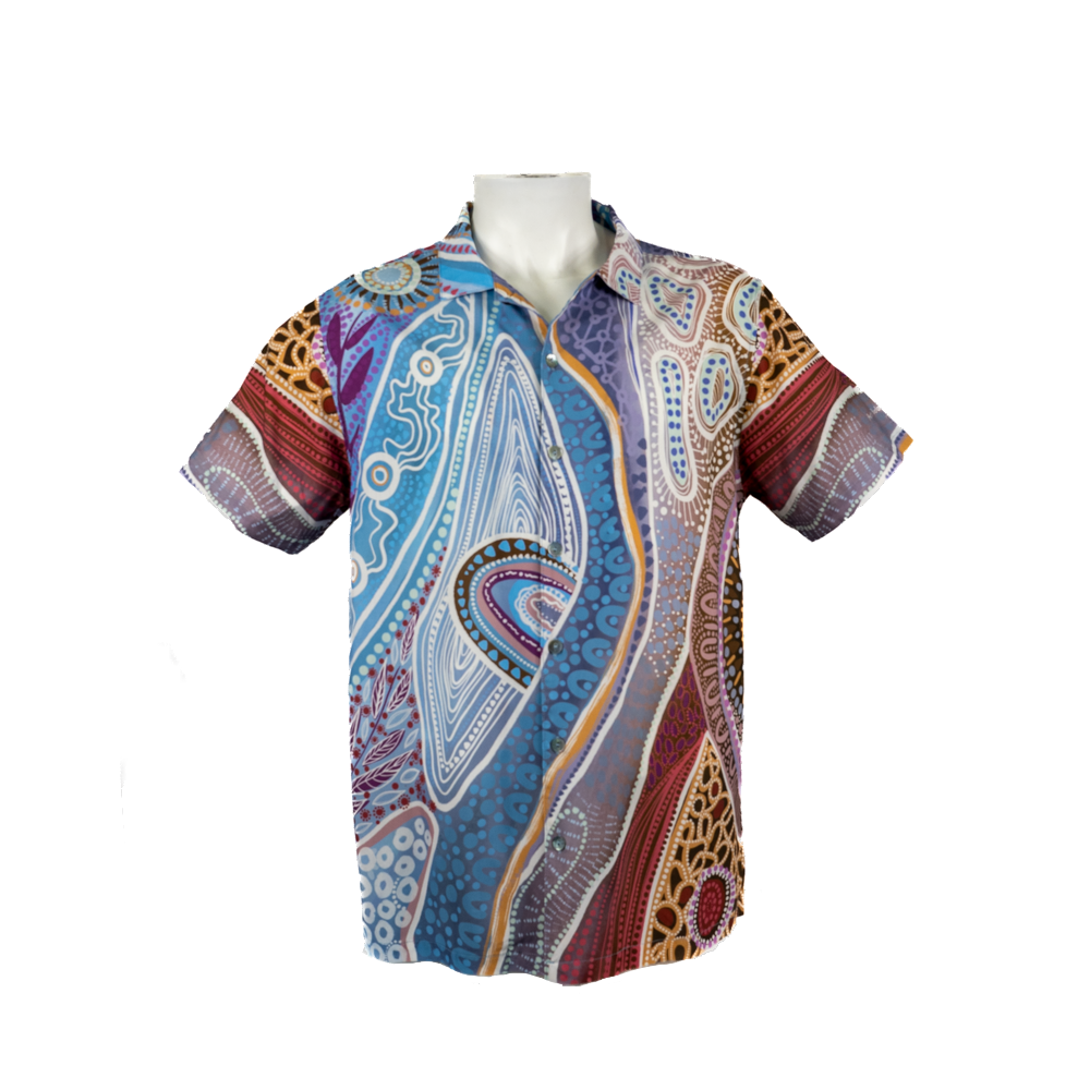 Created for Jatu by renowned Ngarluma, Kariyarra, Nyul Nyul and Yawuru artist Bobbi Lockyer, this Aloha style shirt will keep you cool this summer, even if it's only just the look that's cool.