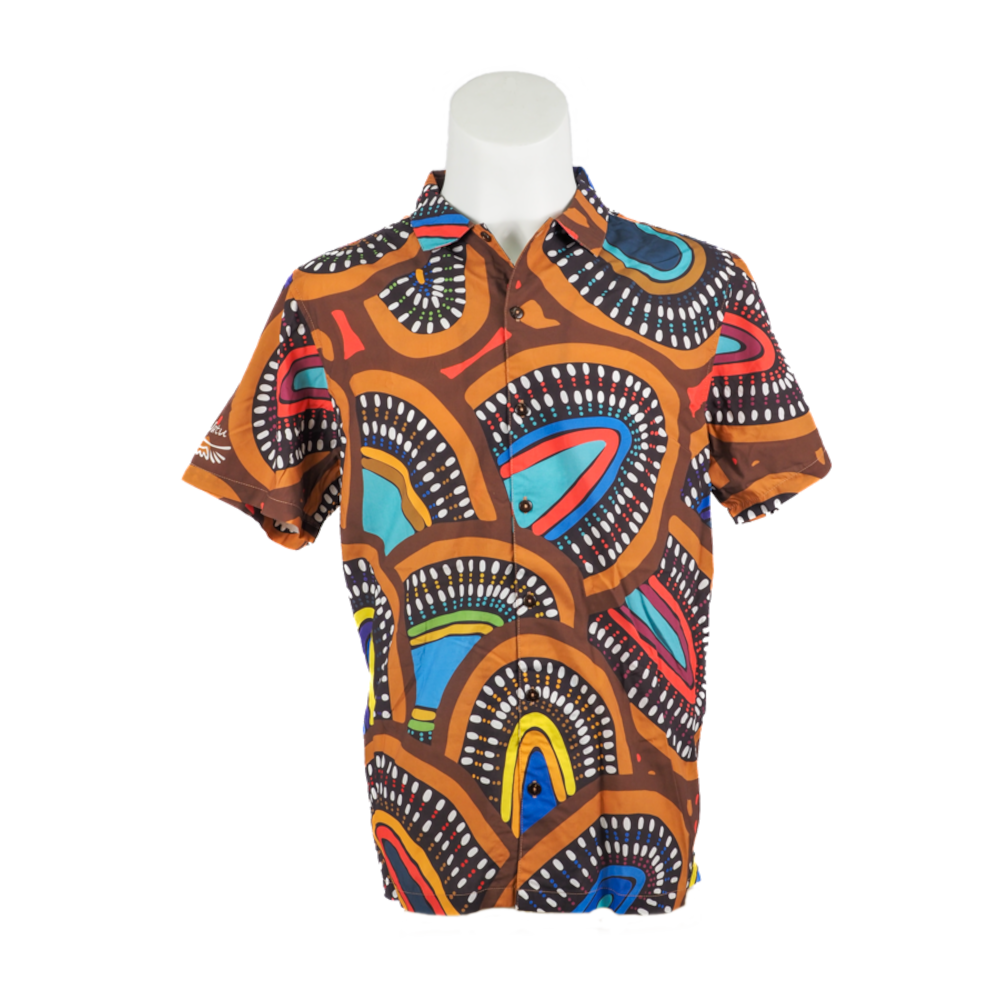 Based on the artwork "River" by Fiona Reidy, this Aloha style shirt features a lightweight, relaxed fit, perfect for the warmer weather.
