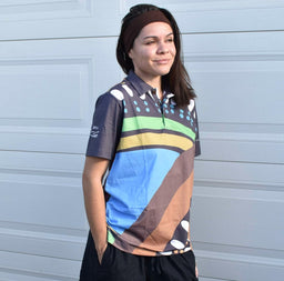 Based on the artwork "River" by Fiona Reidy, this Polo is made from Organic Cotton for a premium feel while showcasing the incredible details of the artwork.