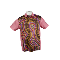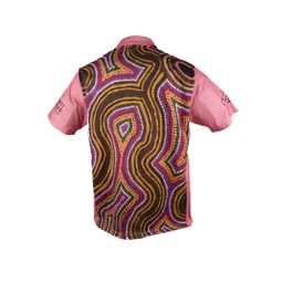 Based on the Tjalyuwan artwork by Nakamarra (Joan) Mandigalli, this 100% GOTS Certified Organic Cotton shirt has been digitally printed with non-toxic, water-based Oeko-Tex Certified inks.