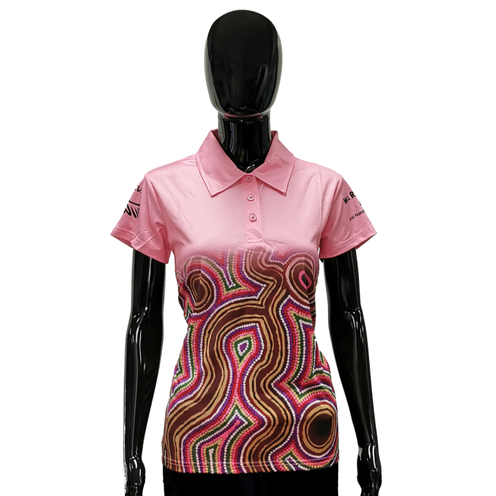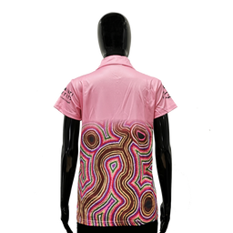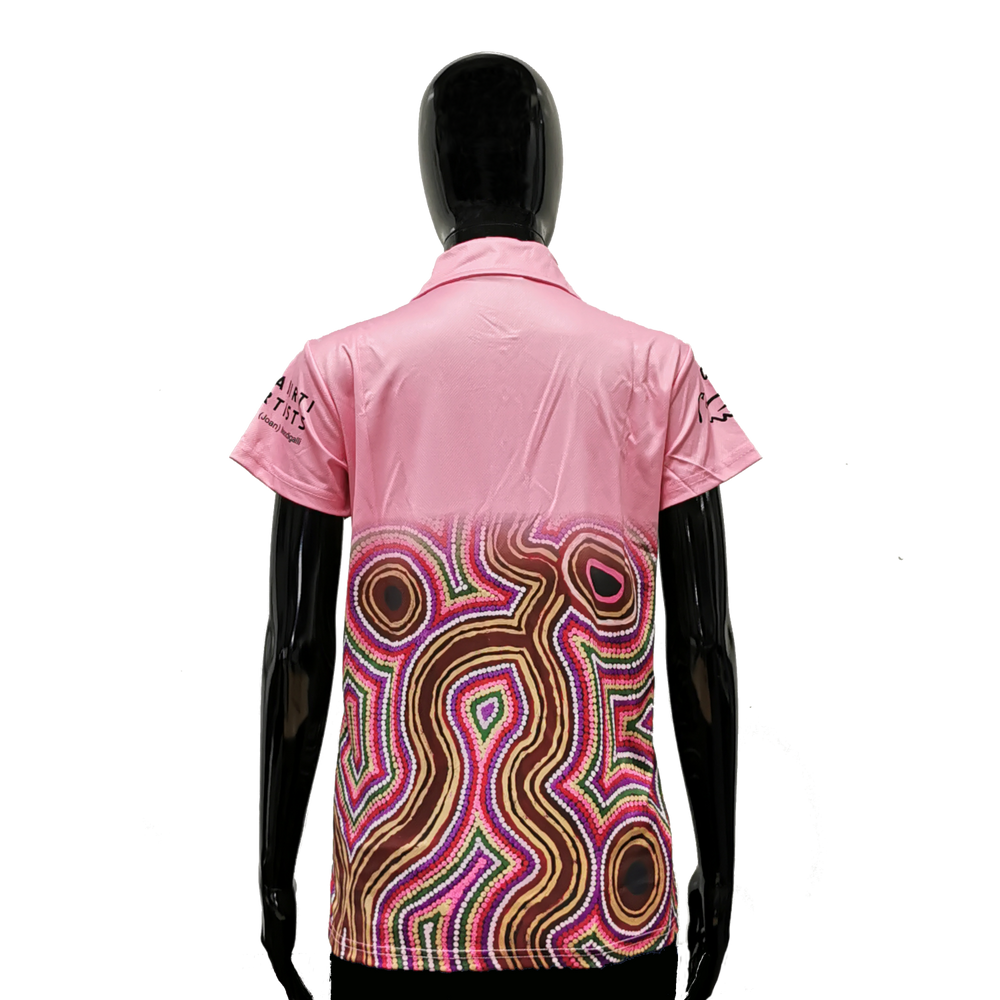 Based on the Tjalyuwan artwork by Nakamarra (Joan) Mandigalli, this fully sublimated polo shirt was created under our standing licensing agreement.